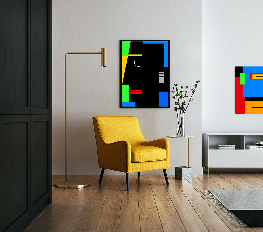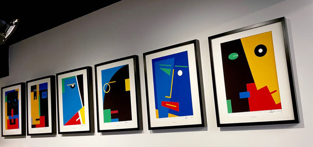 Presenta la colección FACIAL EXPRESSIONS (Gestures & Design), que interpreta mediante la composición de planos y colores básicos, ese complejo mundo interior de los individuos que se manifiesta en los diferentes gestos faciales y lo plasma con una fuerza expresiva manifestada con la mayor síntesis y elegancia de lo minimal.